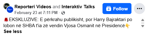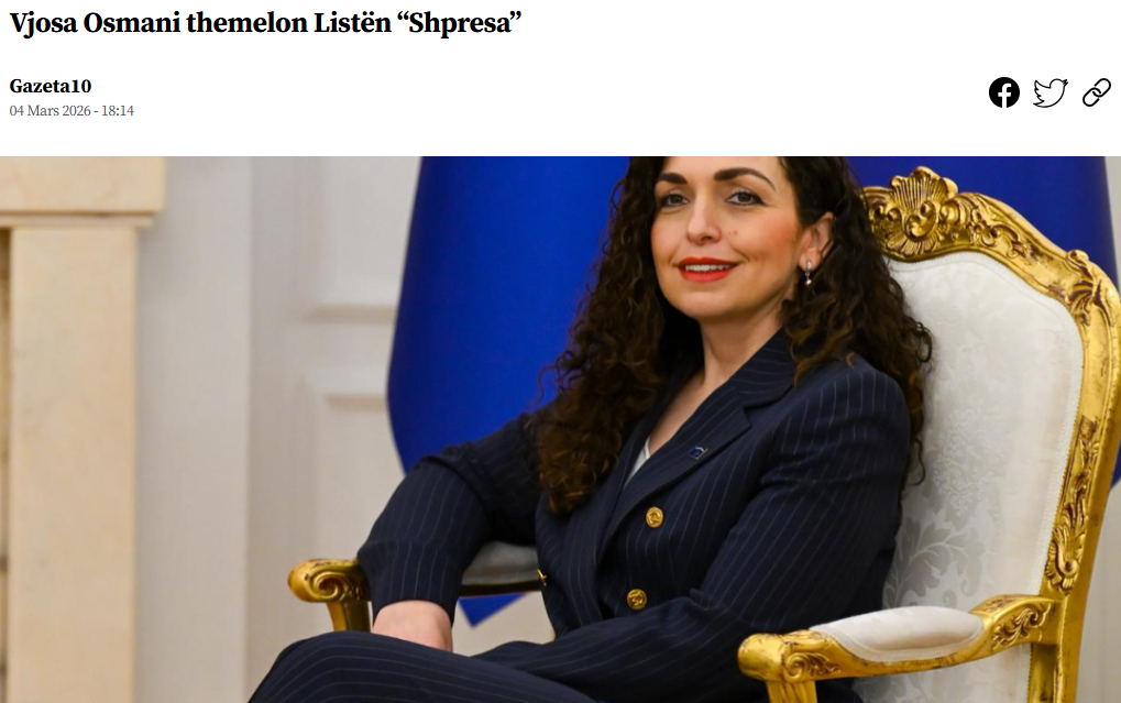 Dy raste të ngjashme janë raportuar më parë. Më 4 mars 2026, mediumi “Gazeta10.com” pretendoi, duke u bazuar në burime anonime, se presidentja e Kosovës, Vjosa Osmani, pas përfundimit të mandatit, do të themelonte Listën “Shpresa”. Ndërkaq, më 23 shkurt, faqja në Facebook “InteraktIv Talks” pretendoi se Harry Bajraktari po ndërmerrte veprime në Shtetet e Bashkuara të Amerikës për t’i zënë vendin Osmanit në Presidencë.