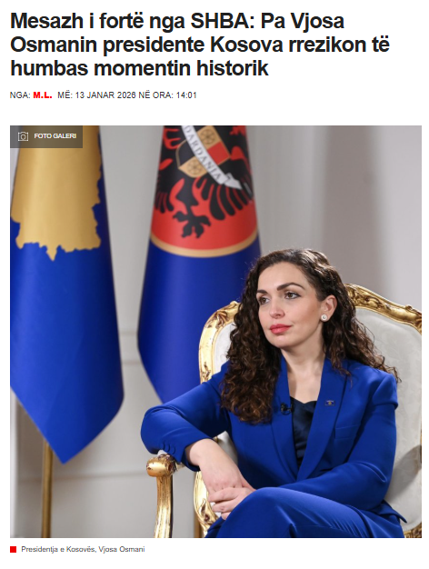 Portali informativ “Botasot.info” ka publikuar të martën (13 janar) një artikull me titull “Mesazh i fortë nga SHBA: Pa Vjosa Osmanin presidente Kosova rrezikon të humbas momentin historik”.