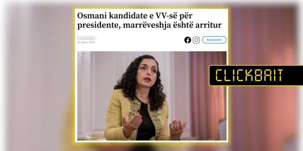 Janë publikuar përmbajtje me mbishkrimin “Osmani kandidate e VV-së për presidente, marrëveshja është arritur”.