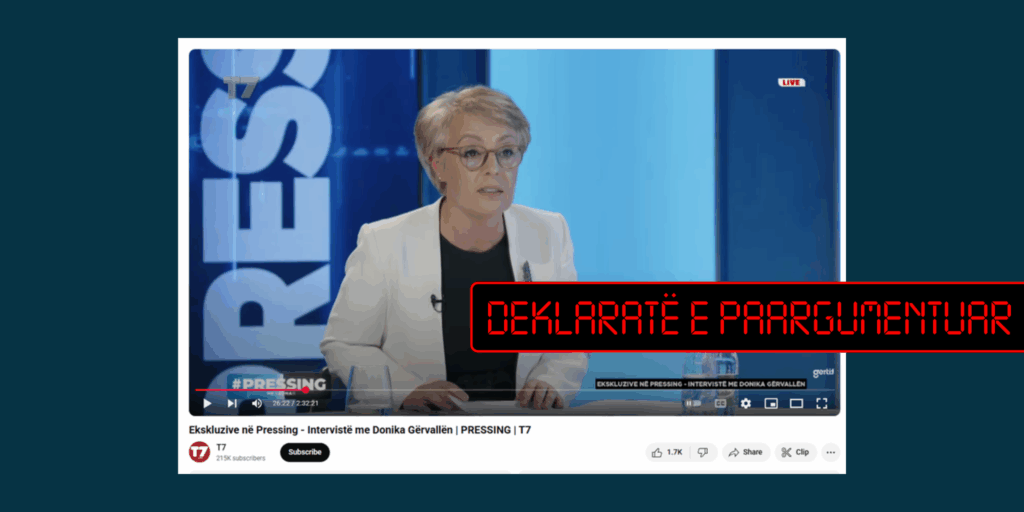 Këtë deklaratë Gërvalla e ka dhënë më 25 gusht, në një intervistë në emisionin “Pressing” që transmetohet në televizionin “T7” (shih këtu).