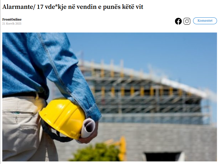 Është publikuar një artikull i titulluar “Alarmante/ 17 vde*kje në vendin e punës këtë vit”.