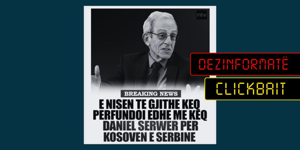 “E nisën të gjithë keq dhe përfundoi edhe më keq Daniel Serwer për Kosovën dhe Serbinë” është mbishkrimi i vendosur, një imazhi të publikuar, që shfaq fotografinë e profesorit amerikan Daniel Serwer.