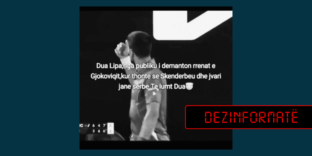Në video kjo llogari ka shkruar se Dua Lipa e ka demantuar Gjokoviqin se Skënderbeu është serb.