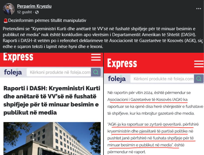 Në rastet e shembujve të hasur në Kosovë, demantimi i përmbajtjeve të publikuara është i drejtë dhe i bazuar, pasi titujt dhe raportimet në rastet e përmendura nga politikanët nuk pasqyrojnë qartë të vërtetën. Korrektimi i këtyre pasaktësive është i nevojshëm dhe i dobishëm për informimin e publikut.