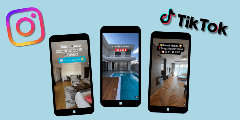 Llogaritë në Instagram mbajnë emra si “real_estate.kosova” (15.5 mijë ndjekës), “portal_real_estate.al” (54.5 mijë ndjekës) dhe në TikTok “portal_real_estate” (128.8 mijë ndjekës).