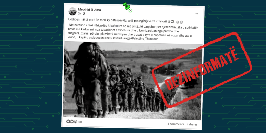 Nëpërmjet kësaj fotografie u pretendua se paraqiten imazhe nga një sulm kundrejt një batalioni izraelit.