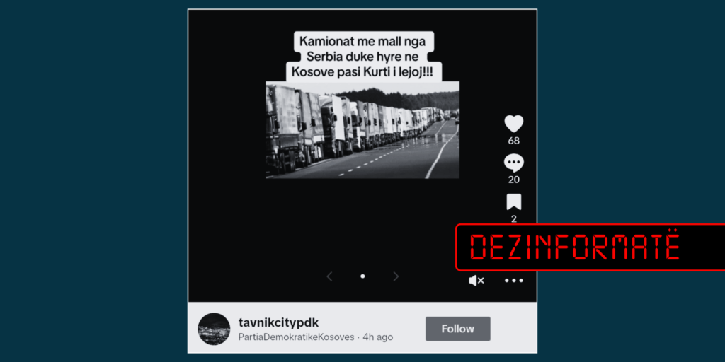 Përmes një fotografie në të cilën paraqitet një kolonë me kamionë, po pretendohet se të njëjtit janë në Serbi në pritje për të hyrë në Kosovë.