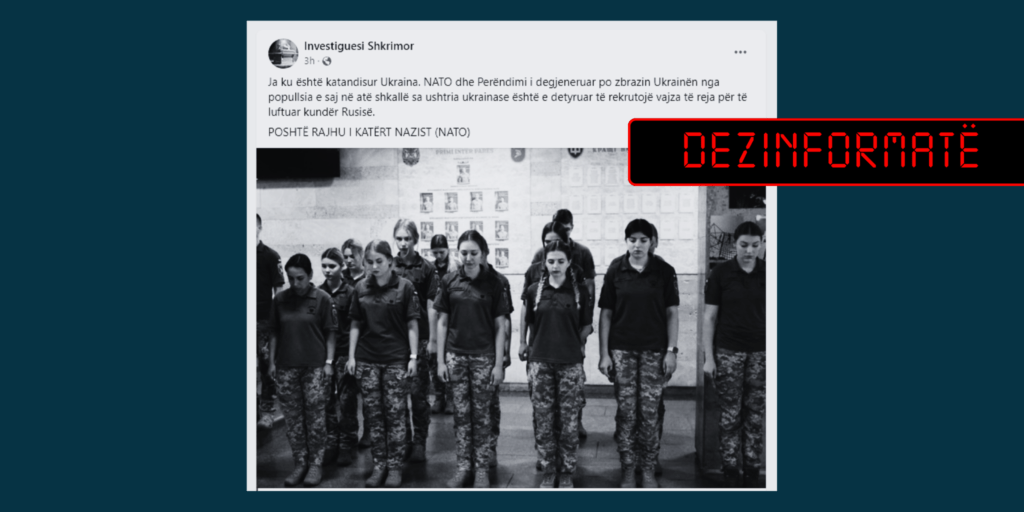Pas verifikimit nga hibrid.info, del se fotografia s’ka të bëjë me rekrutim të vajzave të reja ukrainase, por me homazhet e kryera nga një institut ushtarak ukrainas në nderim të të rënëve.