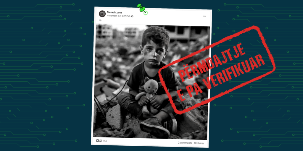 Fotografia që paraqet fëmijën mbi gërmadha, është gjeneruar me Inteligjencë Artificiale
