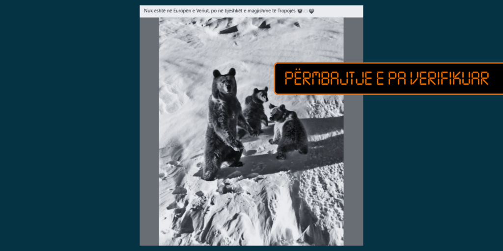 Një fotografi që shfaq tre arinj, u pretendua se është shkrepur në malet e Tropojës.