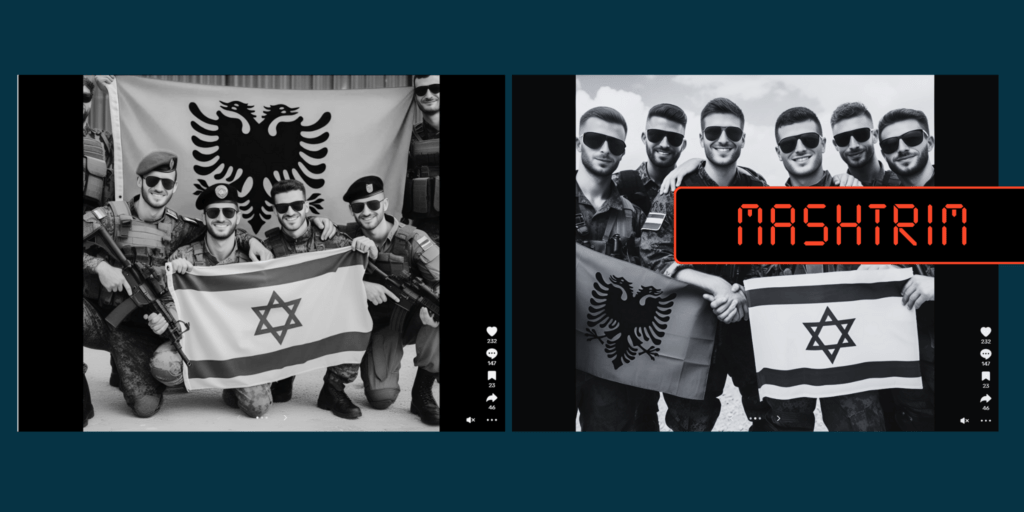 Imazhet e publikuara ku shihen disa ushtarë me flamuj kombëtarë shqiptarë e izraelitë janë gjeneruar me inteligjencë artificiale.