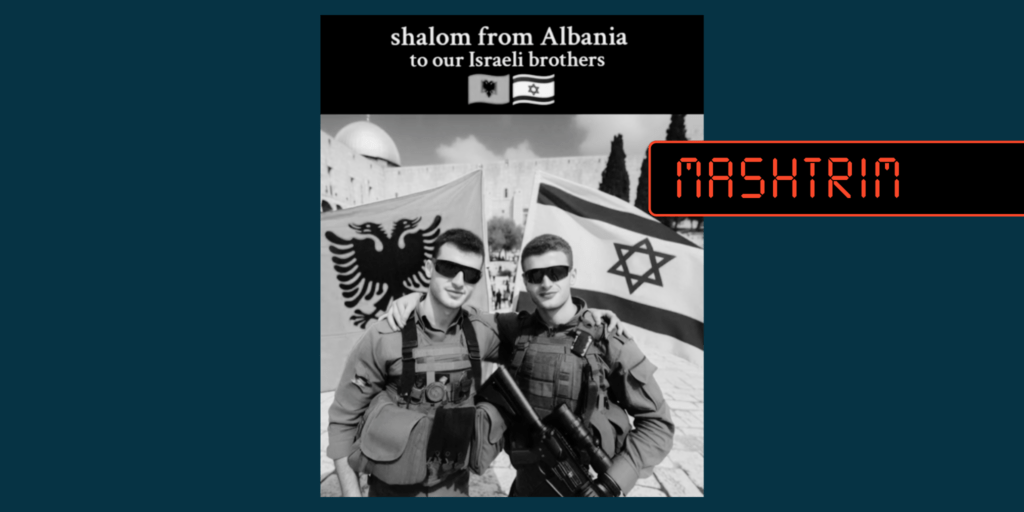 Publikohet një përmbajtje me fotografi, ku shihen ushtarë pranë njëri tjetrit teksa mbajnë në duar flamurin e Shqipërisë dhe atë të Izraelit.