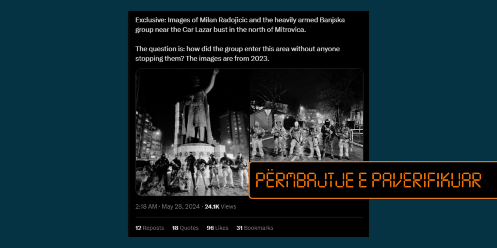 Pretendimi se imazhi që shfaq Milan Radoiçiqin në Mitrovicë të Veriut, pranë bustit të “Car Lazarit”, është i vitit 2023, nuk është i saktë.