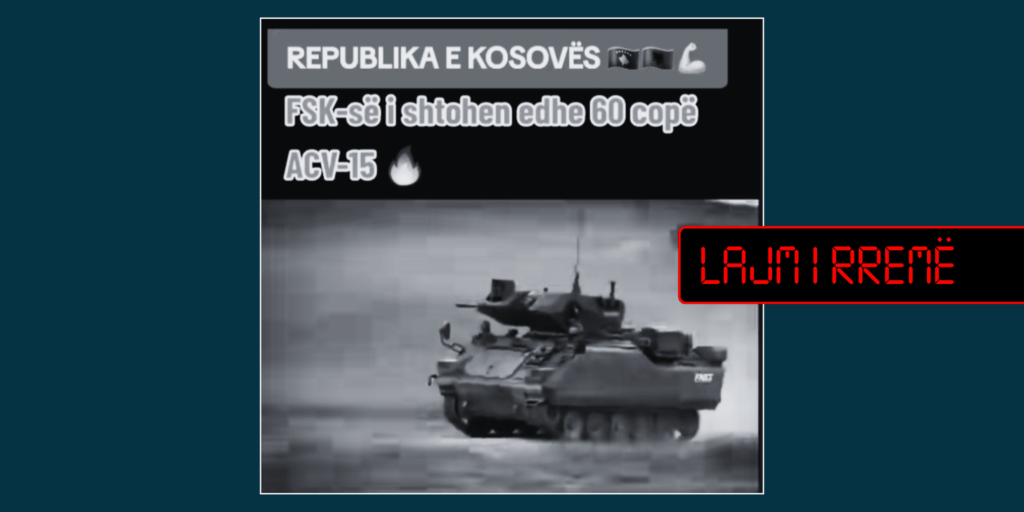 Publikohet një video-material që shfaq pamje të një tankeve me emrin ACV-15, për të cilin pretendohet se Forcës së Sigurisë së Kosovës (FSK) i janë shtuar 60 të tilla.