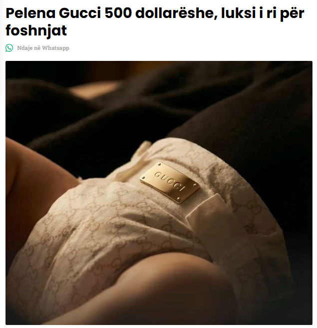 Disa portale në shqip kanë publikuar një pretendim se brendi italian i modës “Gucci” ka lansuar pelena për foshnje me çmim rreth 490 dollarë për pako.