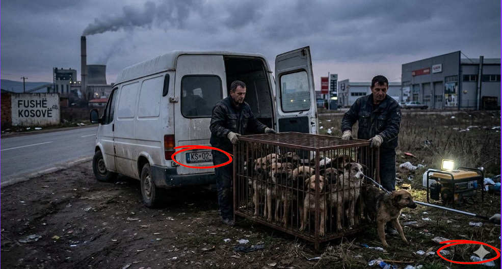 Këtij imazhi i është vënë përshkrimi “Kjo fotografi tregon një proces shqetësues që po ndodh në heshtje. Qen të rrugës po mblidhen në komuna të tjera dhe po sillen në Fushë Kosovë”.