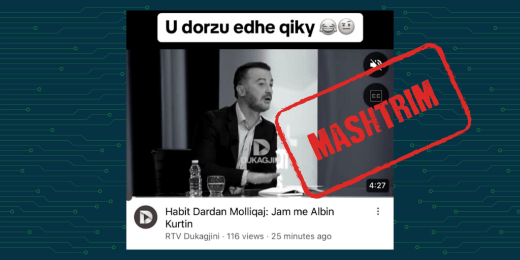 Por, pas kontrollit të video-materialit të “RTV Dukagjini”, hibrid.info ka gjetur se videoja në fjalë është e titulluar “Habit Dardan Molliqaj: Jam me Albin Kurtin nëse s’e bën Asociacionin”, çka dëshmon për ndërhyrjet në imazhin e shkëputur tek pjesa e titullit (shih këtu).