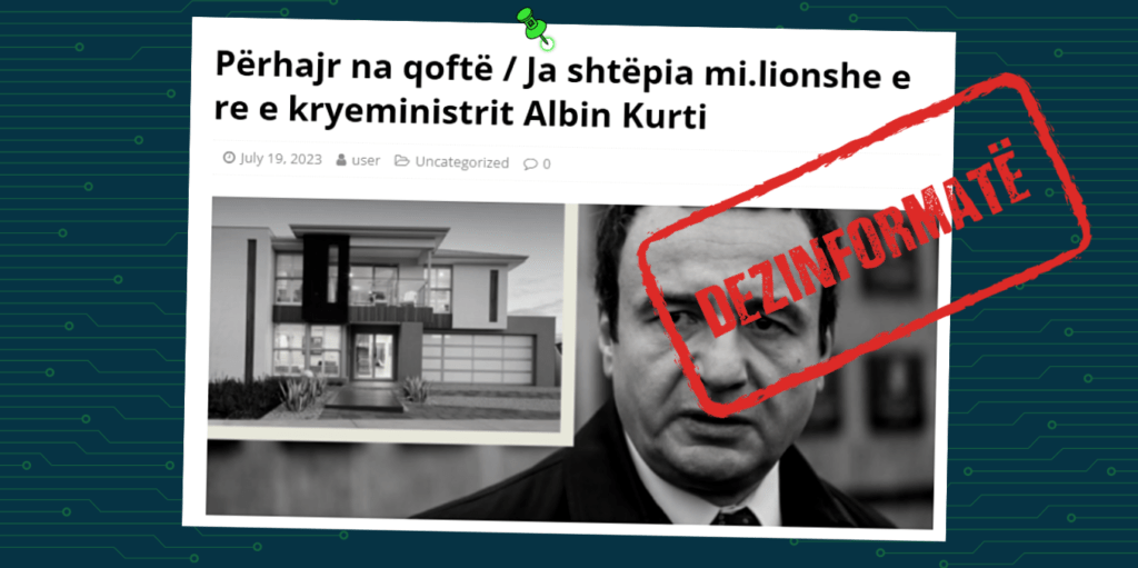 Një portal i dyshimtë me emrin “viraln32.com” ka publikuar më 19 korrik një artikull me titull “Përhajr na qoftë / Ja shtëpia mi.lionshe e re e kryeministrit Albin Kurti”.