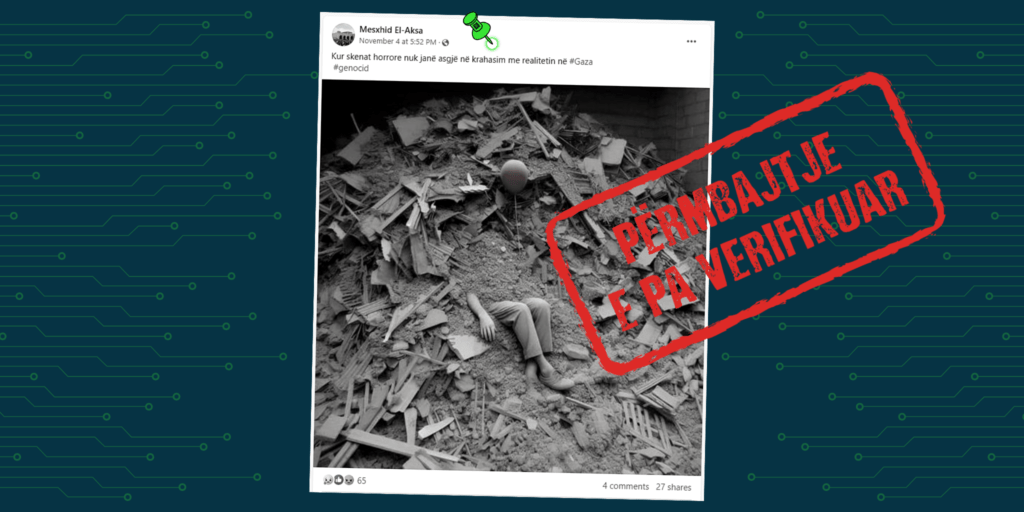 Nëpërmjet një fotografie ku shihen disa pjesë të trupit të një personi nën gërmadhat e ndërtesave, pretendohet se paraqitet realiteti në Gaza.