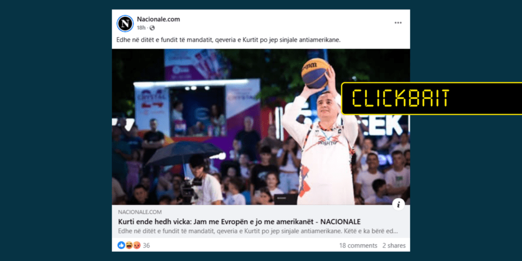 Bazuar në metodologjinë e punës, hibrid.info e vlerëson përmbajtjen si “Clickbait”.