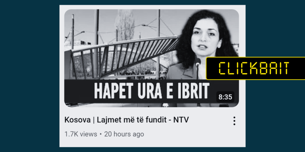 Pretendimi i cekur në ballinën e videos nuk qëndron. Ura kryesore mbi lumin Ibër në Mitrovicë nuk është hapur dhe nuk ka vendim zyrtar për hapjen e saj.