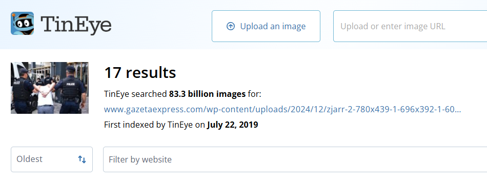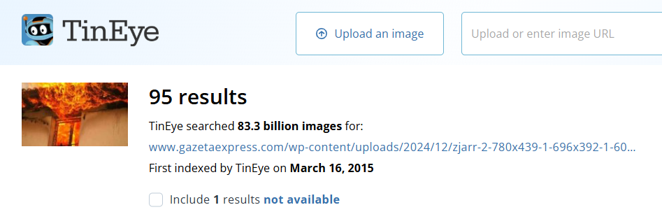“Tineye” vërteton se kjo fotografi qarkullon në internet që nga viti 2019 (shih këtu)