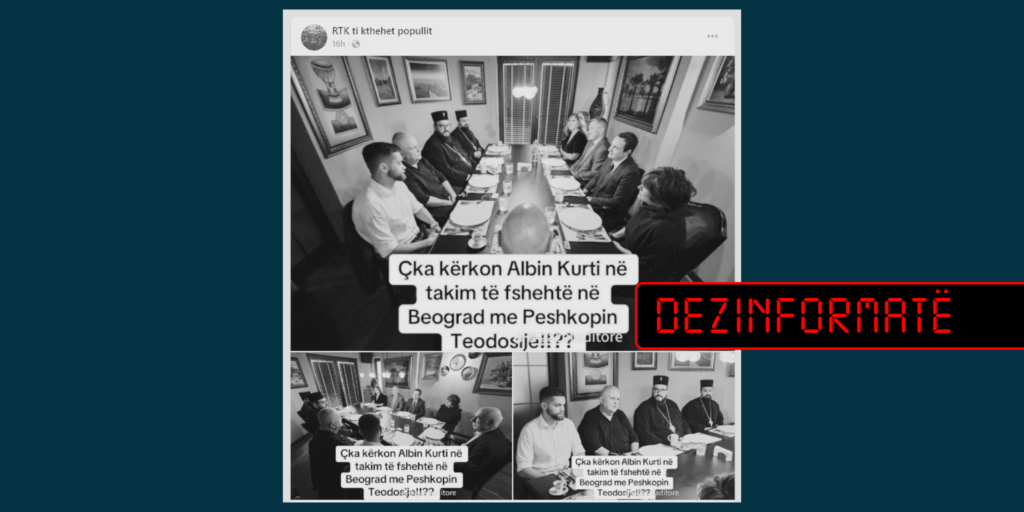 Pas kontrollit të fakteve, hibrid.info ka vërtetuar se kryeministri i Kosovës, Albin Kurti, nuk është takuar fare me peshkopin e dioqezës së Rashkës dhe Prizrenit, Teodosije.