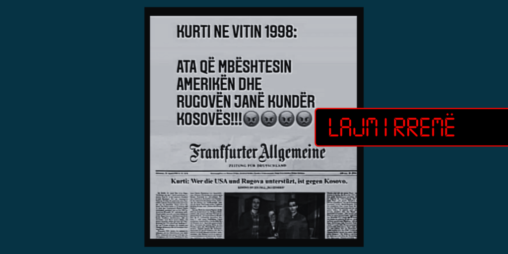 Në një publikim në TikTok është pretenduar se kryeministri aktual Albin Kurti në vitin 1998 kishte deklaruar për gazetën gjermane “Frankfurter Allgemeine Zeitung (FAZ)” se “ata që mbështesin Amerikën dhe Rugovën janë kundër Kosovës”.