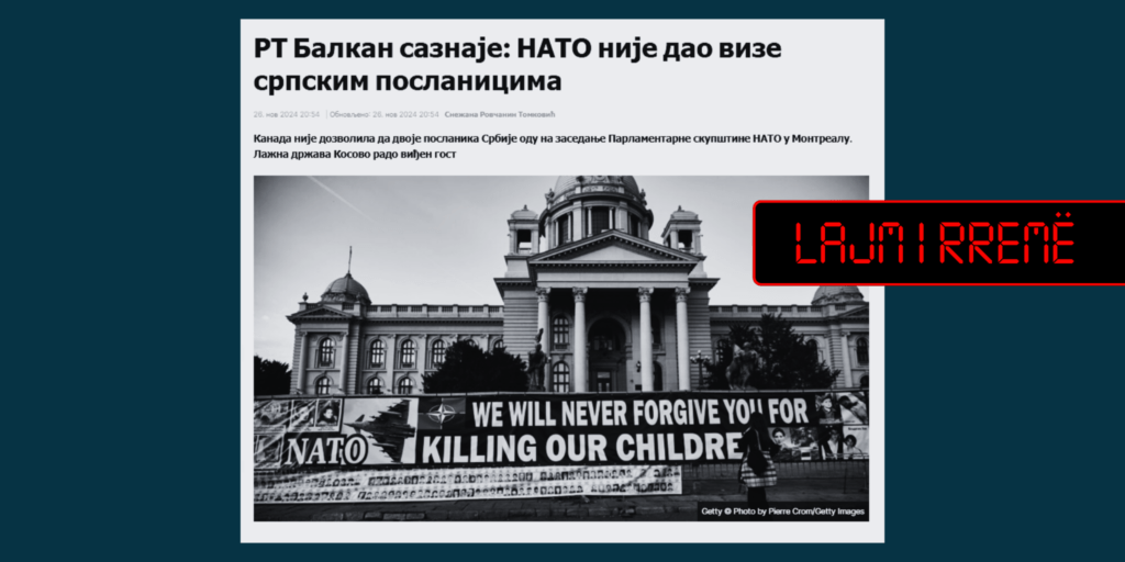 Mediumi në gjuhën serbe “RT Balkan”, në një artikull të publikuar më 25 nëntor me titull “RT Ballkan mëson: NATO nuk u ka dhënë viza deputetëve serbë”, dhe me nëntitull “Kanadaja nuk ka lejuar dy përfaqësues të Serbisë që të shkojnë në seancën e Asamblesë Parlamentare të NATO-s në Montreal. Shteti i rremë i Kosovës është mysafir i rrallë”, ka pretenduar se delegacioni i Kosovës ka qenë pjesëmarrës në këtë seancë.