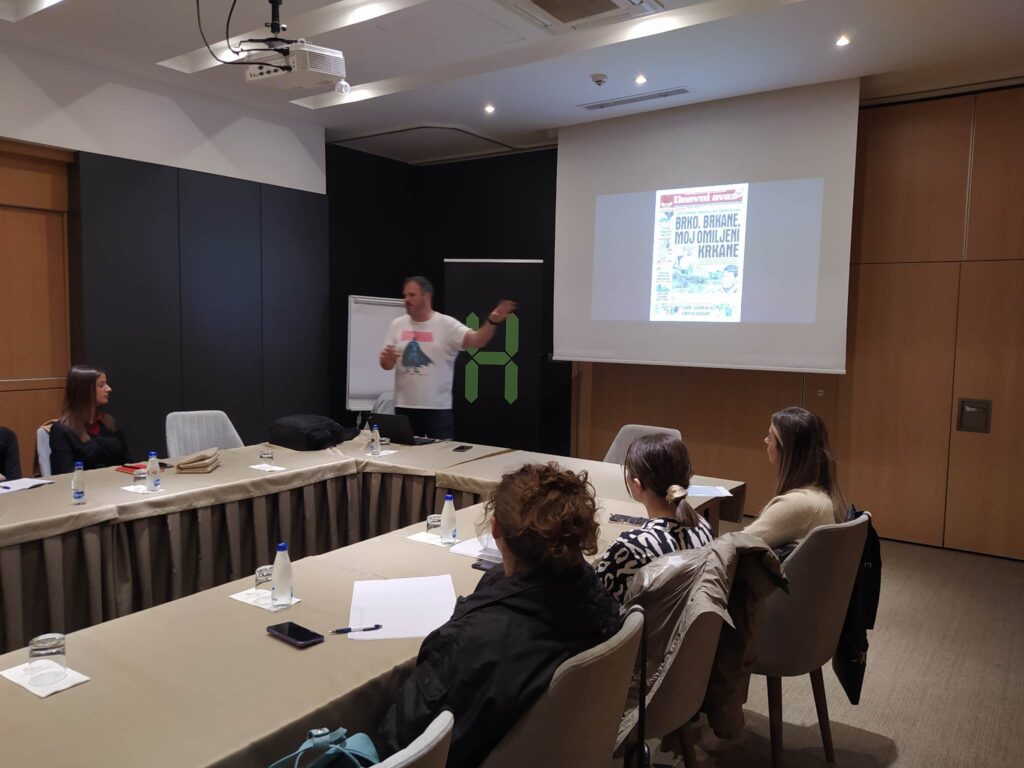 Ligjërues ishte Darko Brkan, drejtues i Zasto Ne, i cili prezantoi përvojat e organizatës në zhvillimin e platformave rajonale për kontroll të fakteve, si Raskrinkavanje dhe Istinomjer.