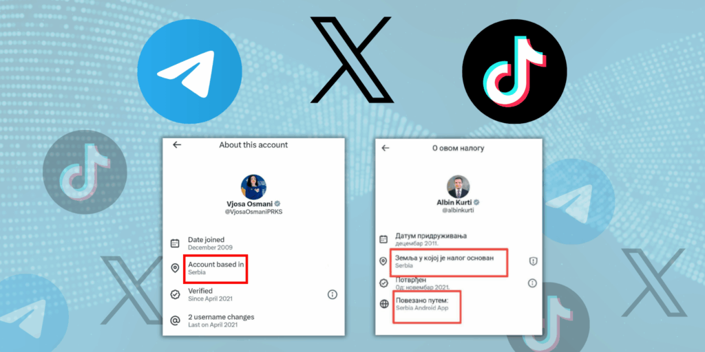 Pretendimet se llogaritë zyrtare të Albin Kurtit dhe Vjosa Osmanit në X figurojnë me vendndodhje “Serbia”, nuk qëndrojnë. Imazhet që po qarkullojnë në Telegram, TikTok dhe X nga llogari në gjuhën serbe dyshohet të jenë të manipuluara.