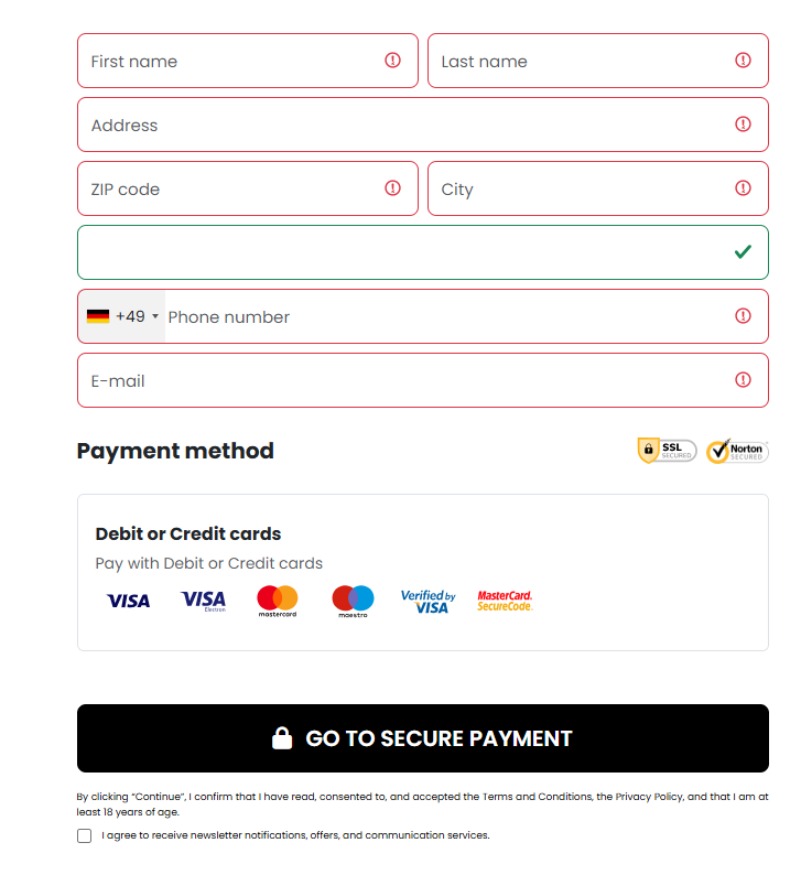 Pas plotësimit është hapur dritarja për kryerjen e pagesës. Për shkak të mundësisë së mashtrimit financiar, me këtë pagesë nuk është vijuar tutje.