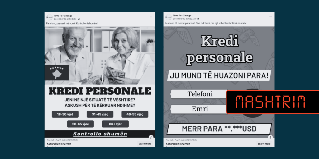 Përmbajtja që pretendon se ofron mundësi për kredi, është mashtruese.