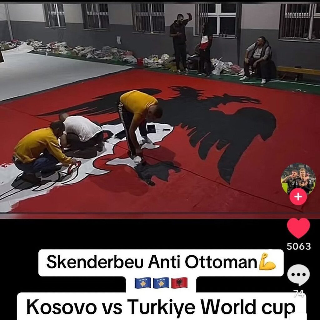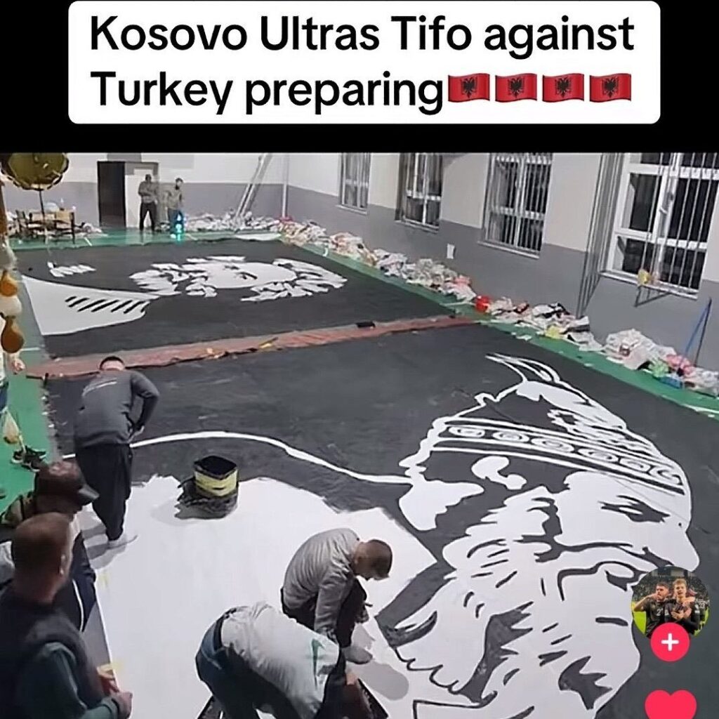 Publikohet një imazh që paraqet përgatitjet për një koreografi, ku shihet figura e Gjergj Kastrioti Skënderbeut, duke u shoqëruar me pretendimin se tifozët e Kosovës po organizojnë një koreografi me përmbajtje anti-osmane, në prag të ndeshjes finale të play-off-it mes Kosovës dhe Turqisë për kualifikim në Kampionatin Botëror 2026, e cila pritet të zhvillohet të martën (31 mars) në stadiumin “Fadil Vokrri”, nga ora 20:45.