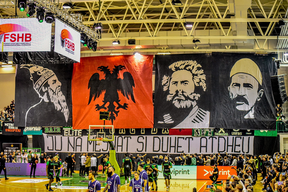 Koreografia gjatë ndeshjes basketbollistike KB Trepça – KB Tirana