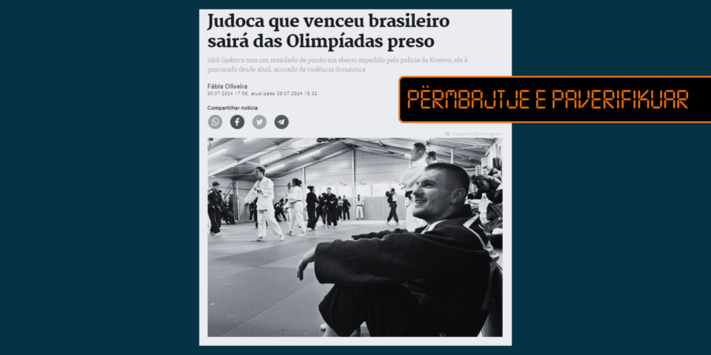 Një medium brazilian ka raportuar pasaktë se xhudisti kosovar Akil Gjakova rrezikon të arrestohet nga Policia e Kosovës dhe se për të është lëshuar fletarrest si i dyshuar për dhunë në familje.