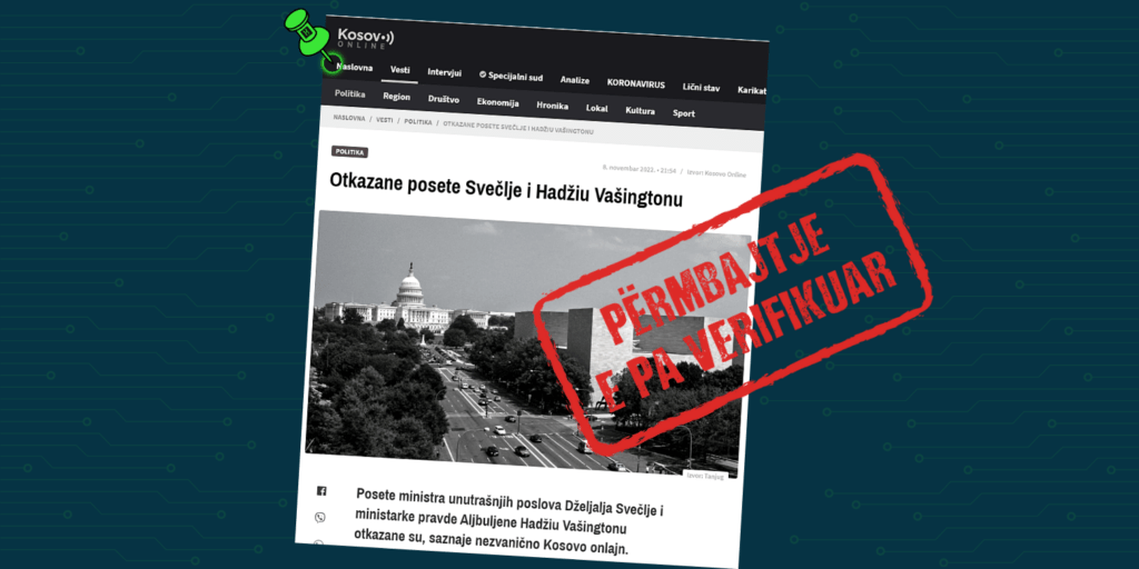 Mediumi online në gjuhën serbe “Kosovo-online” ka publikuar një artikull me pretendimin se i është anuluar vizita në SHBA ministres së drejtësisë, Albulena Haxhiu dhe ministrit të brendshëm, Xhelal Sveçla.