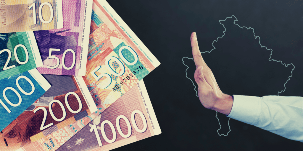 Nga data 1 shkurt e këtij viti, valuta zyrtare e Serbisë, dinari, u shpall e jashtëligjshme për përdorim për transaksione të pagesave brenda territorit të Republikës së Kosovës.