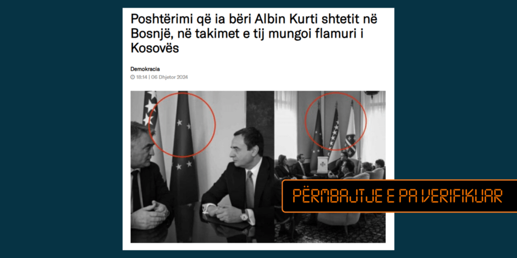 Nëpërmjet një artikulli është pretenduar se në takimet e kryeministrit të Kosovës, Albin Kurti, në vizitën në Bosnjë-Hercegovinë, nuk ka pasur flamur të Kosovës.