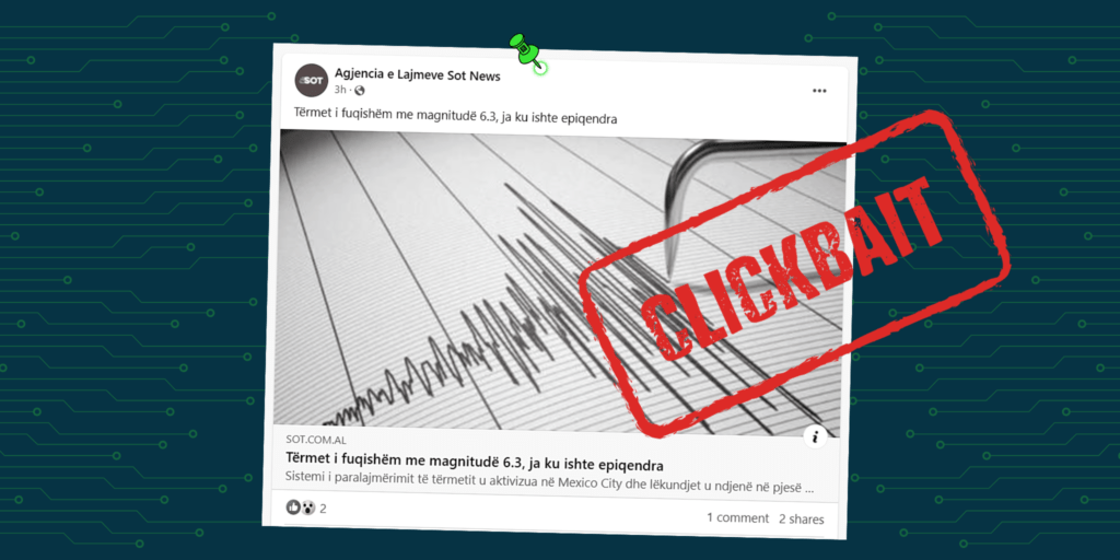 Mediumi në gjuhën shqipe “sot.com.al” ka publikuar një artikull në lidhje me një tërmet në Meksikë, pa treguar në titull se në cilin vend ka ndodhur ngjarja.