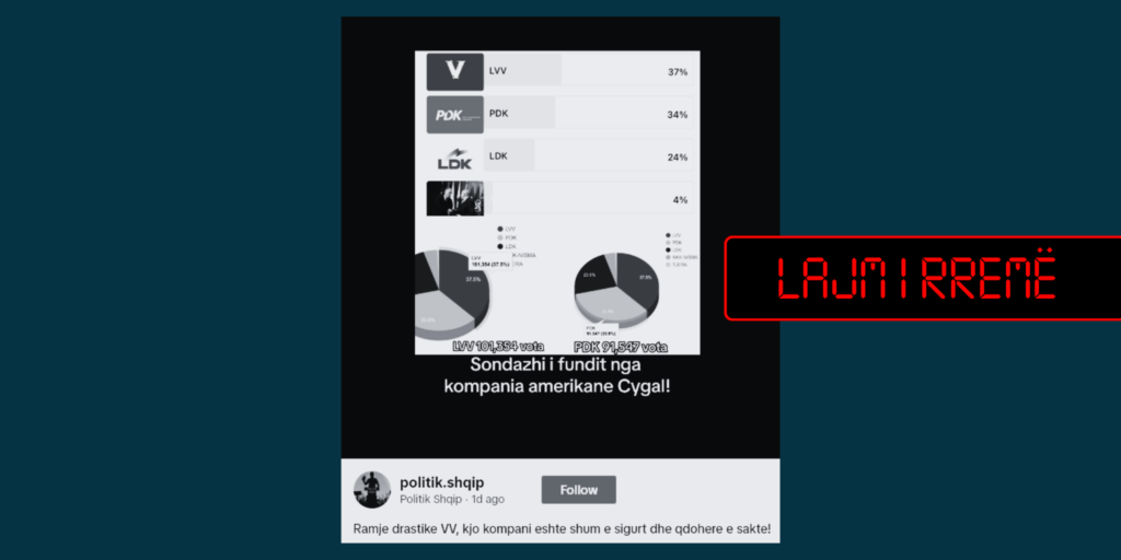 U publikua një sondazh në formë postimi për disa nga subjektet politike në Kosovë, me pretendimin se i njëjti u krye nga kompania amerikane Cygal.