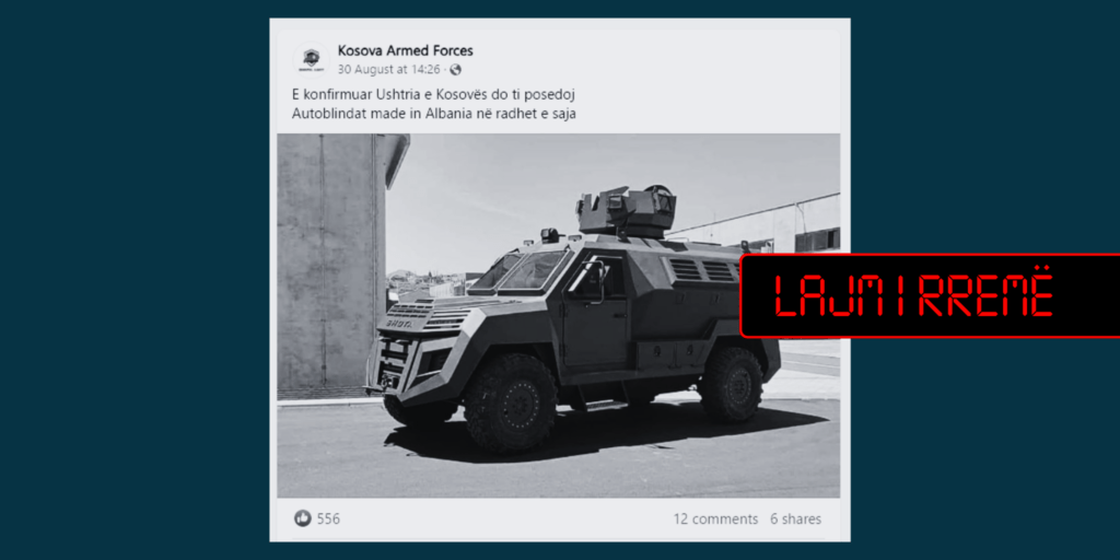 Përmes një postimi në Facebook u pretendua se është konfirmuar që ushtria e Kosovës do të pajiset me automjetin e parë shqiptar të blinduar.