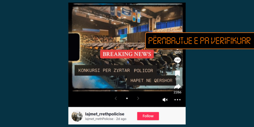 Kjo përmbajtje u publikua më 18 maj në TikTok nga një llogari me emrin “lajmet_rrethpolicise”.