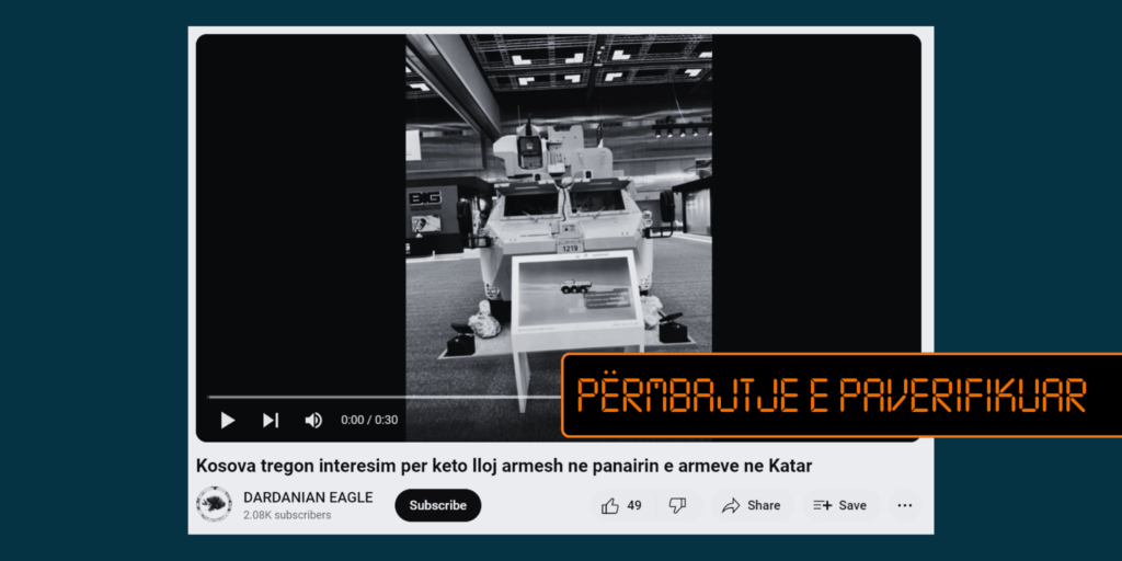 Videoja me titull “Kosova tregon interesim per keto lloj armesh ne panairin e armeve ne Katar”, u publikuar me datë 9 mars në Youtube nga kanali “DARDANIAN EAGLE”.