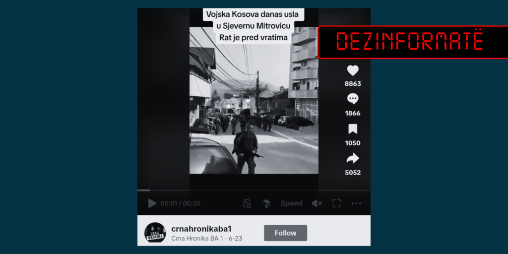 Përmes një videoje të vjetër qershor 2023, një llogari në gjuhën serbe në TikTok, ka pretenduar se e njëjta është realizuar më 23 qershor 2024 dhe se paraqet, siç thuhet, “Ushtrinë kosovare” në veri të Mitrovicës.