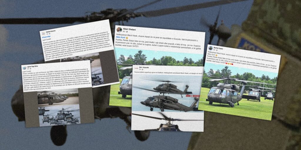 Nga 16 – 19 nëntori janë hasur përmbajtje të publikuara në të cilat pretendohet për ardhjen së shpejti të helikopterëve “Black Hawk” në Kosovë. Sipas postimeve në mediat sociale, furnizimi i Forcës së Sigurisë së Kosovës me këta helikopterë është meritë e kryeministrit në detyrë, Albin Kurti.