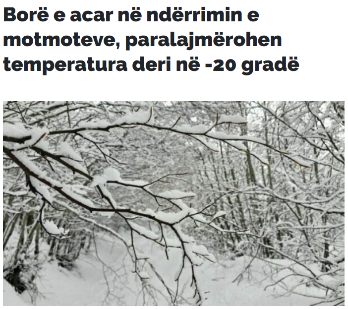 Janë publikuar tituj artikujsh ku paralajmërohen borë e acar për fundvit dhe temperatura deri në -20 gradë.