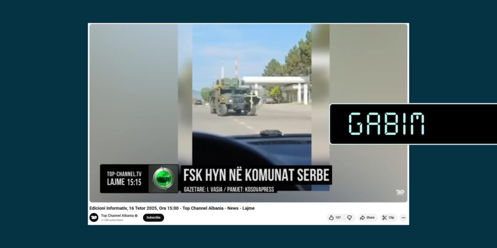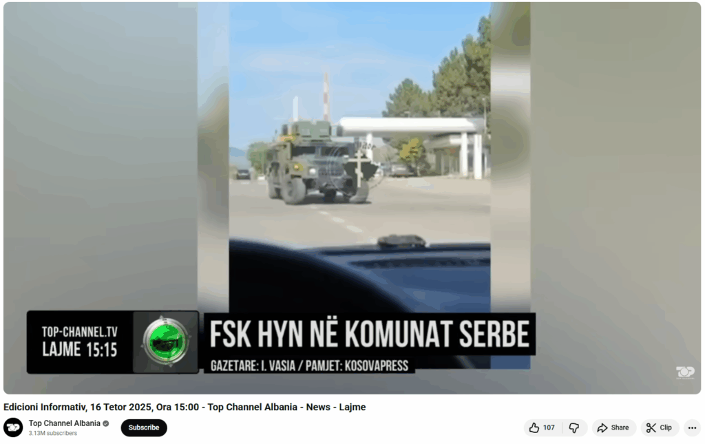 Publikohet një raportim me titullin “FSK hyn në komunat serbe” dhe nëntitullin “Autoritetet pranojnë se ishte një gabim: Disa automjete gabuan rrugën”.