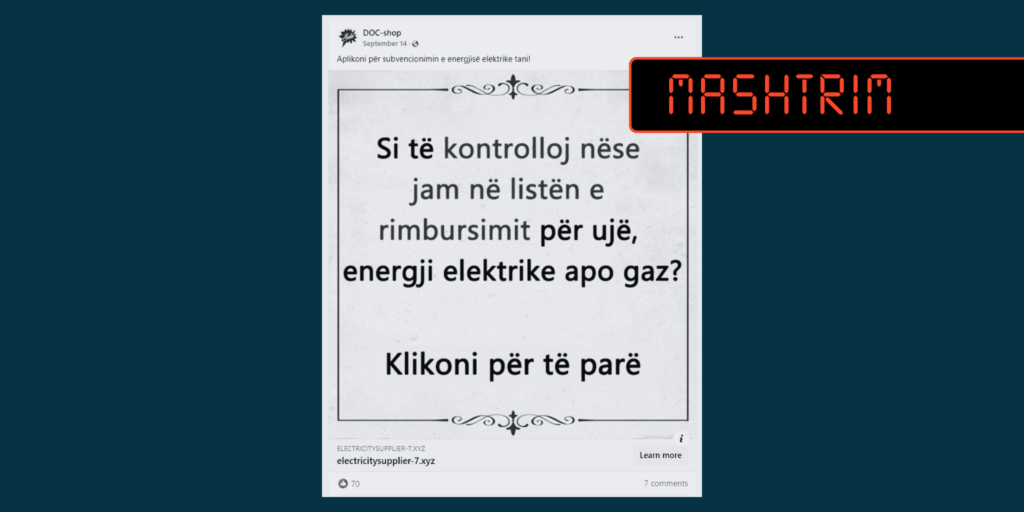 Është publikuar një përmbajtje me mbishkrimin, ku pretendohet se ofrohen instruksione për të kontrolluar nëse jeni në listën e rimbursimit për ujë, energji elektrike apo gaz.