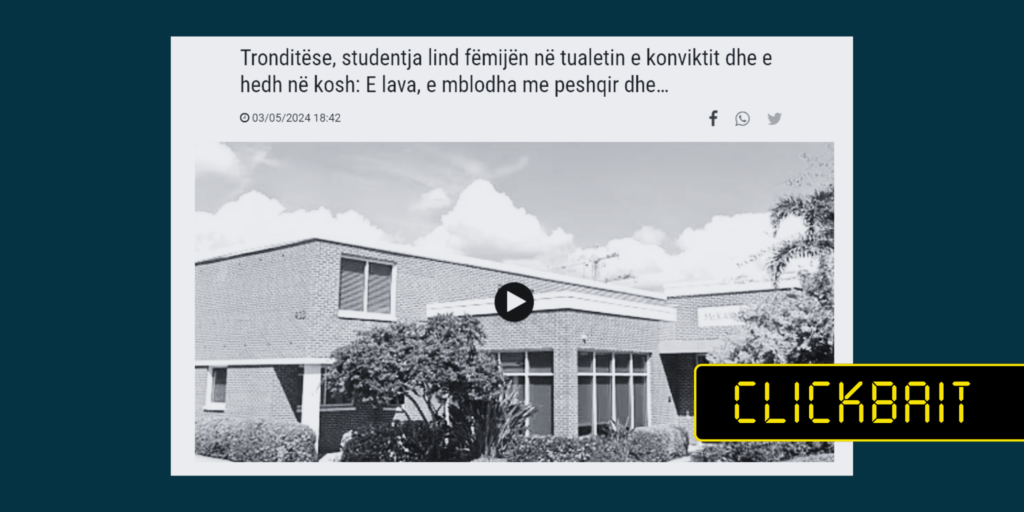 Bazuar në metodologjinë e punës, ky artikull merr vlerësimin si “Clickbait”.